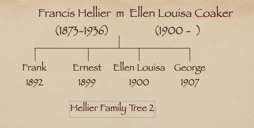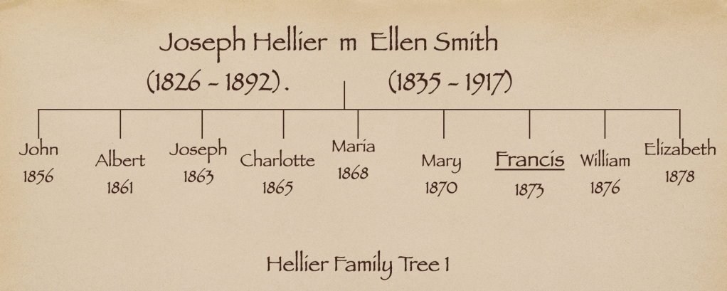 One of the first things I am doing for my ‘One Place Study’ is following people through the censuses and trying to understand the relationships. I particularly like it when I knew the more recent family members or can find something to bring the family to life. The focus here is on Francis Hellier. It is very much a work in progress…