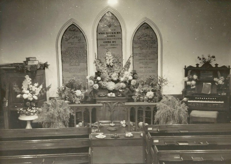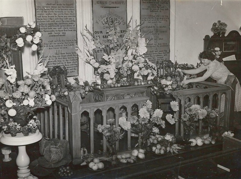 Certainly in my childhood there was still a large amount of home produce brought to chapel for the celebration – from gardens, farms and kitchens, including of course Bert Stead’s jams. The womenfolk particularly would spend hours arranging flowers and decorating the chapel. As it was a special occasion more folk would come to the service than usual. The following day, Monday, a harvest supper was laid on for all comers. A great social event. The produce was given to the poor and needy or sold at a friendly post-supper auction for charity. Local produce featured both in the displays and the supper. In Yorkshire you find Wensleydale cheese served with the apple pie at Harvest supper, rather than Devonshire’s clotted cream.