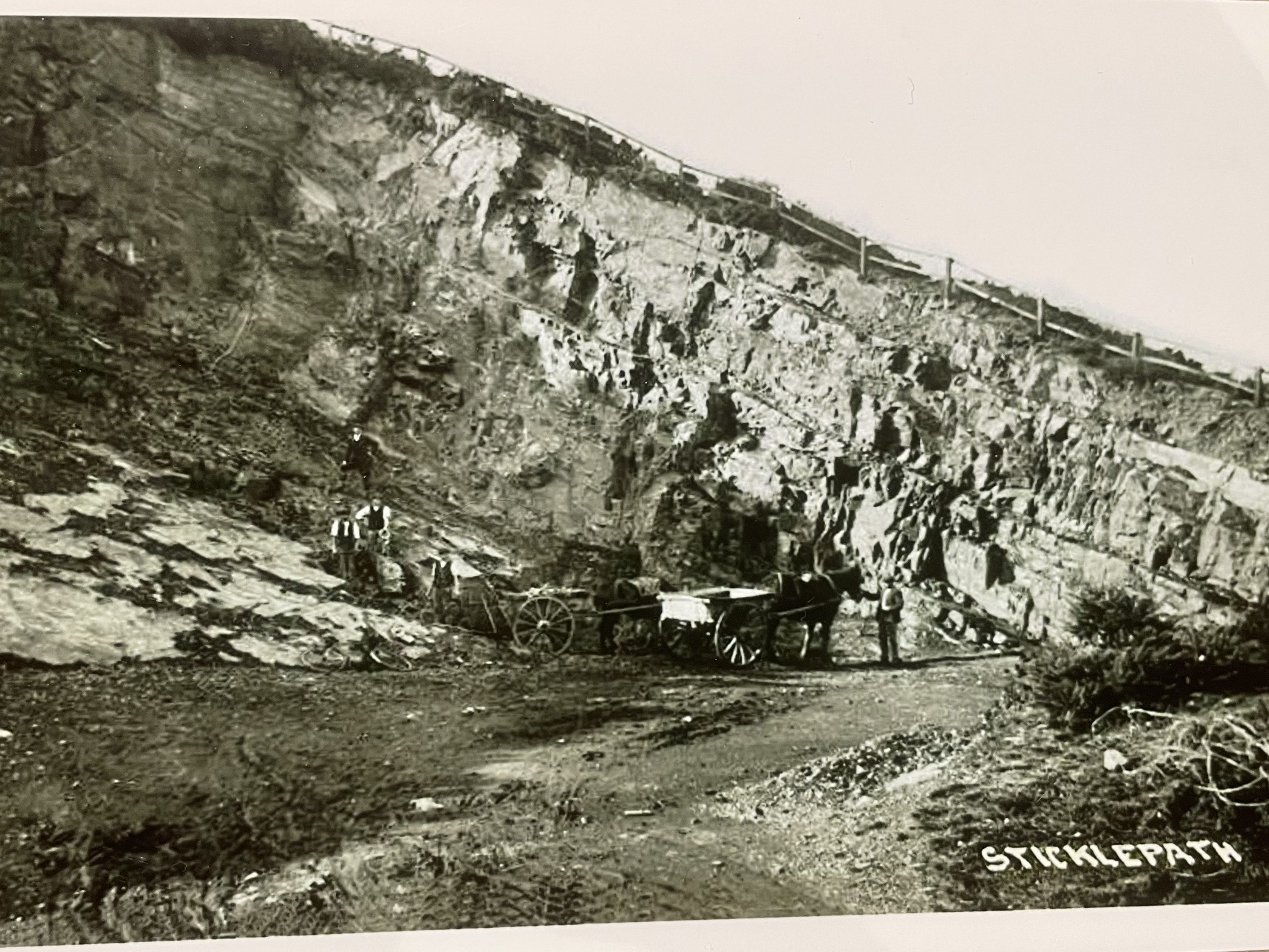 Greenhill too. The Quarry seen on The Mount in Sticklepath produced Blue Elvin stone, highly regarded for road building. However, ours was too tough, too hard to crush to a suitable size so was soon abandoned.