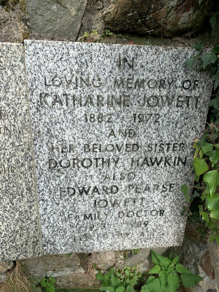 Her own entry: https://www.findagrave.com/memorial/232629748/katharine-jowett