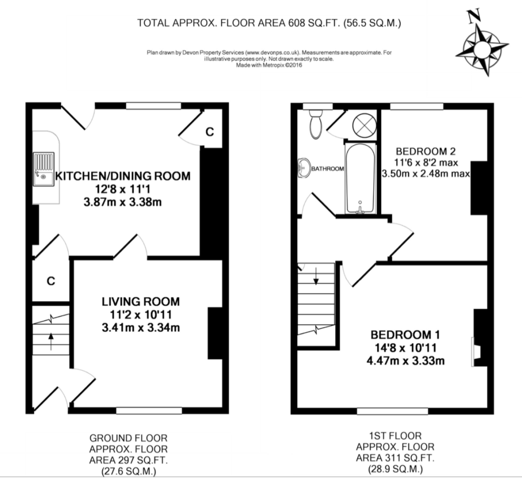 Perhaps equally interesting is to understand the size and type of housing of a headmaster and mine manager in the 1920s, perhaps some of the better off villagers, with a total floor area of 56.5 sq m . The plan prepared for Stags estate agent Okehampton 2017 shows there were two downstairs rooms and two upstairs.